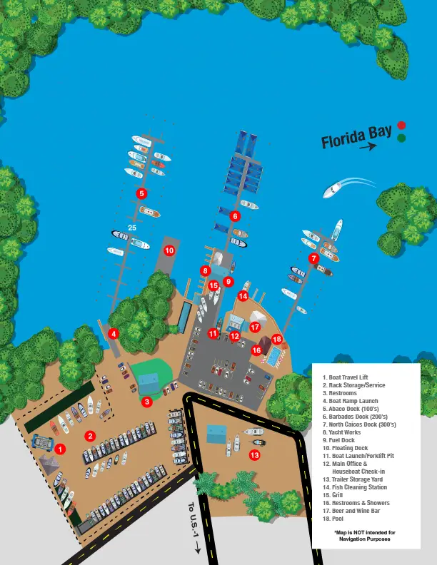 Mangrove Marina is spread over twenty acres, offering two bathhouses with showers, dock carts, bicycle racks, and green areas for our guests.
